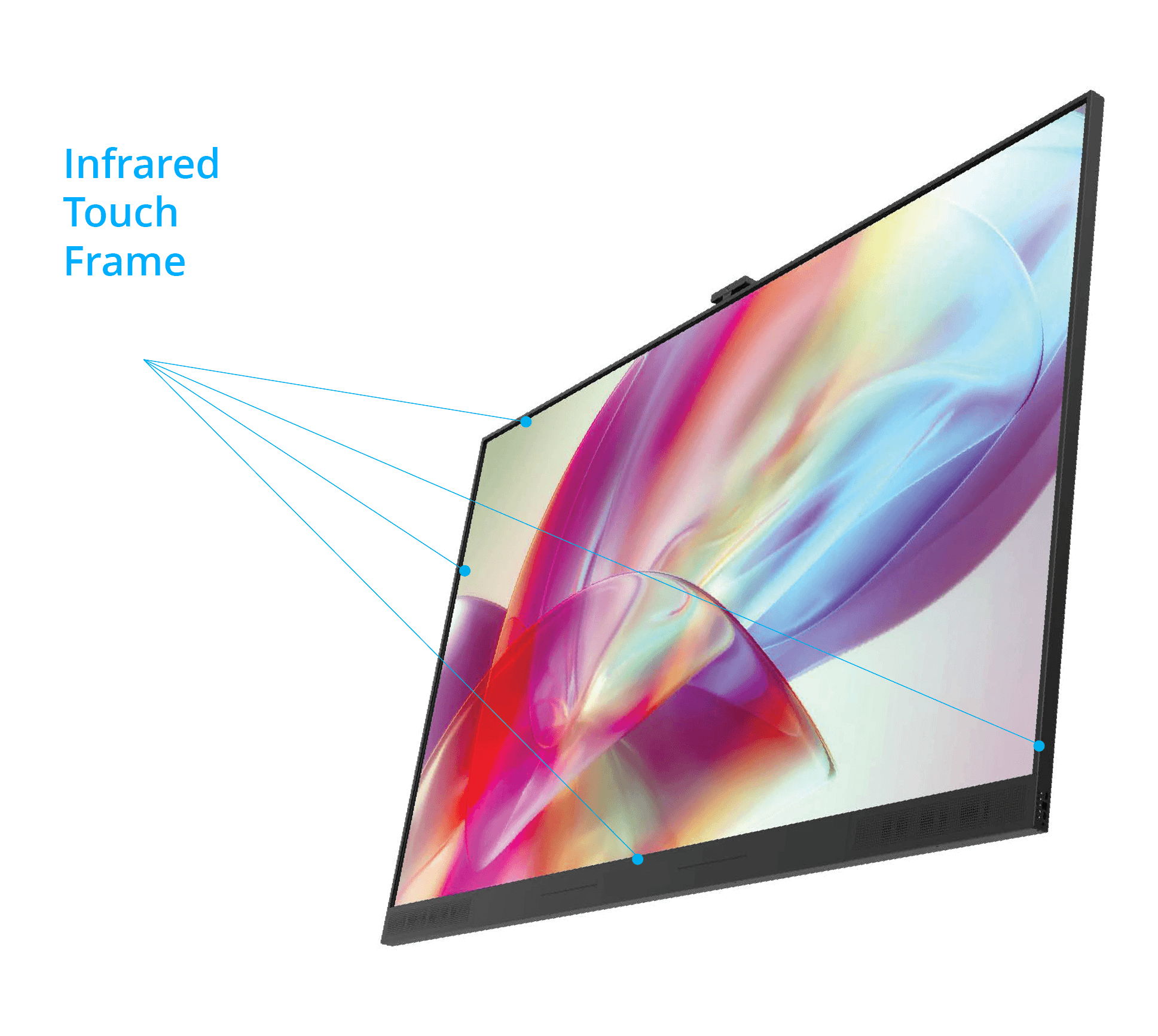The screen features an overall dark colour scheme and incorporates a modern thin bezel design, with an infrared touch frame width of only 18mm.