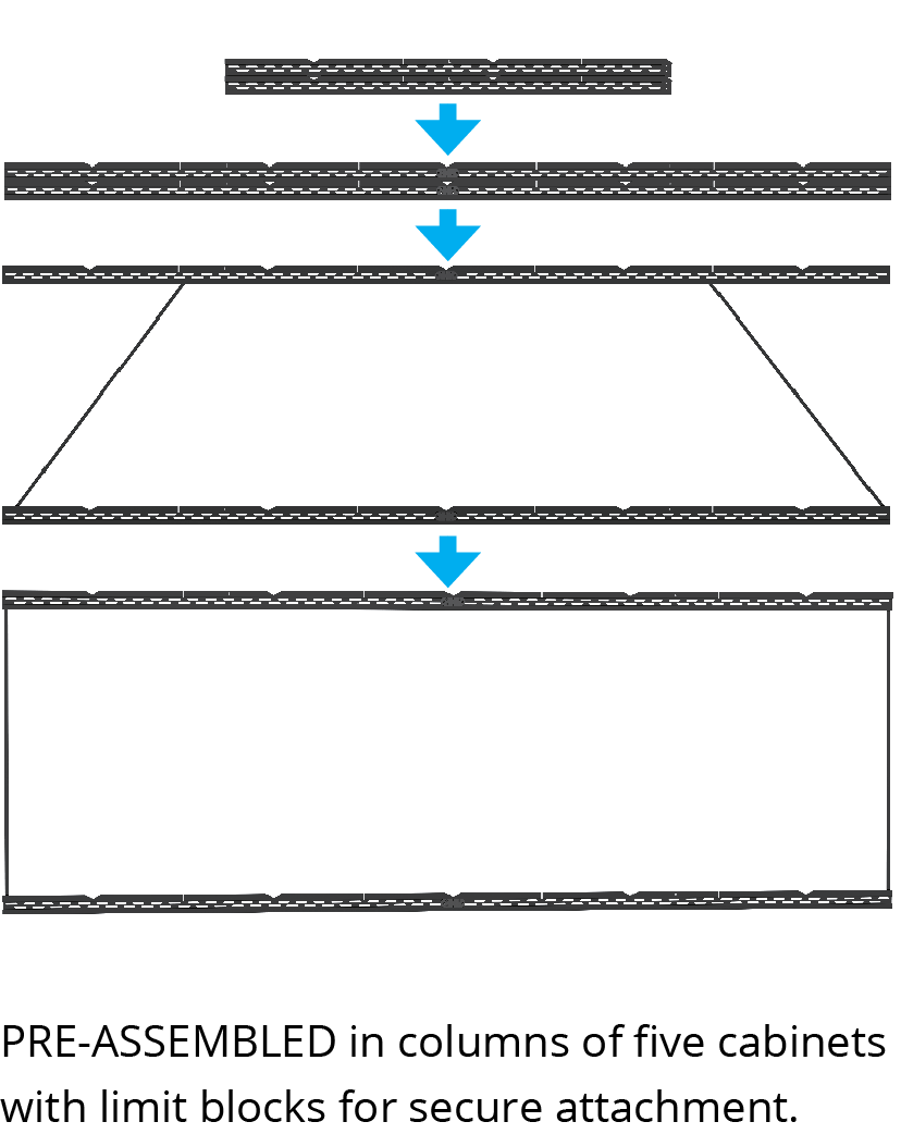 The image shows a 136-inch version. The 108-inch version is one less column of cabinets.
