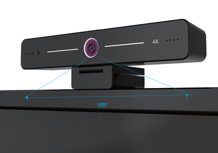The 4K camera, featuring a 100° wideangle lens and face-tracking capabilities for smooth and efficient remote meetings, is detachable and offers a maximum operational range for both the camera and microphone. *Optional