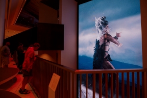 A large-scale digital artwork by renowned New Zealand artist Lisa Reihana has been installed in the Aotea Centre foyer, immersing visitors in a visual spectacle, telling the traditional Māori story of the origins of our world