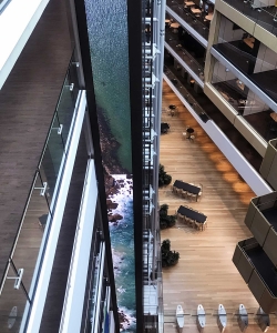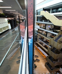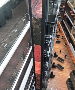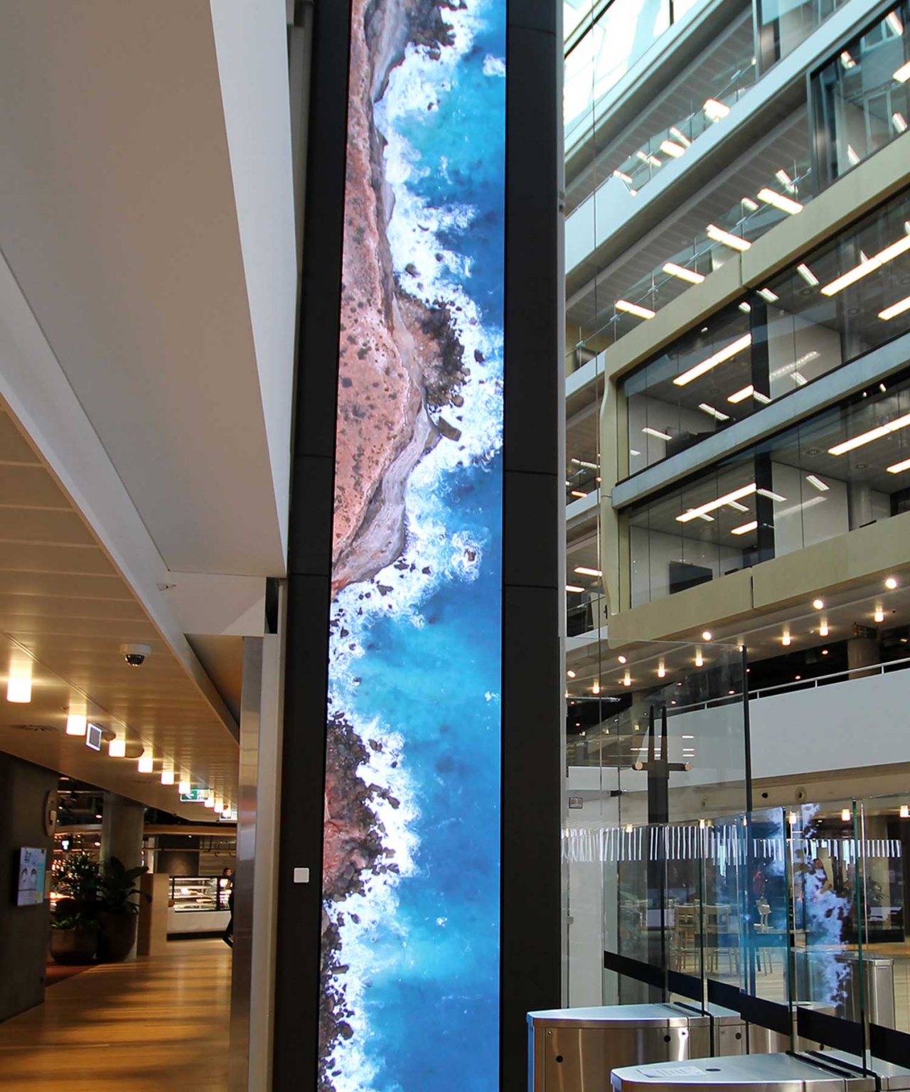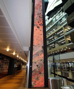 Attached to the glass facade of the lift shaft and spanning across 7 floors of this state-of-the-art facility is a unique 31m tall digital LED column.