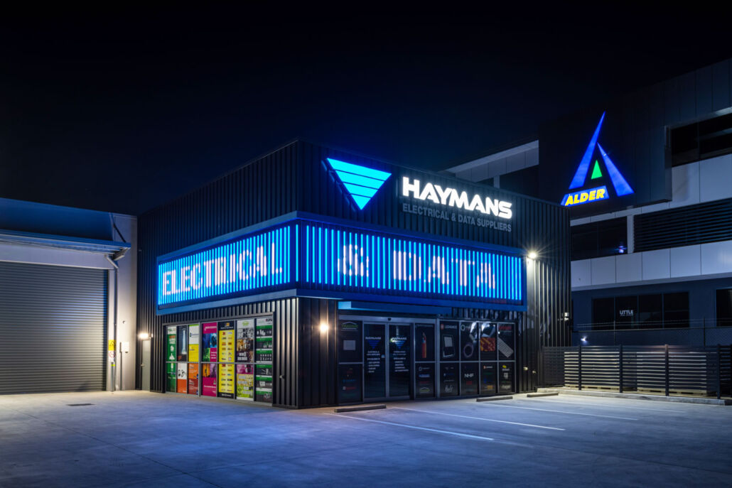 Haymans Electrical Store in Oxenford (QLD) has adopted the latest VuePix Infiled technology – VueStrip, making their store stand out within the commercial district. An exciting new Digital Media Façade provides a perfect platform to advertise their business to the passing traffic on the busy M1.