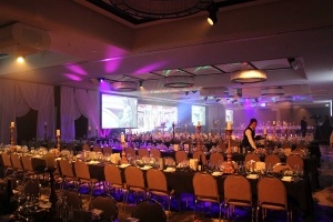 Elite Event Technology once again provided a complete audiovisual production for the Property Council ACT Awards gala, held at Hotel Realm in Canberra. This year’s award night was held with a Roman Empire theme and the whole venue was styled to suit the occasion. The EET team chose the VuePix Infiled ER4 LED screen as a major centerpiece, positioned in the middle of the main stage and setup as a 4k wide x 2k high super widescreen.