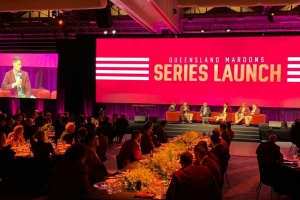 VuePix Infiled ER3 screen – 15m long & 3m high, have been installed by Scene Change at Howard Smith Wharves, ready for the Maroons State of Origin function.