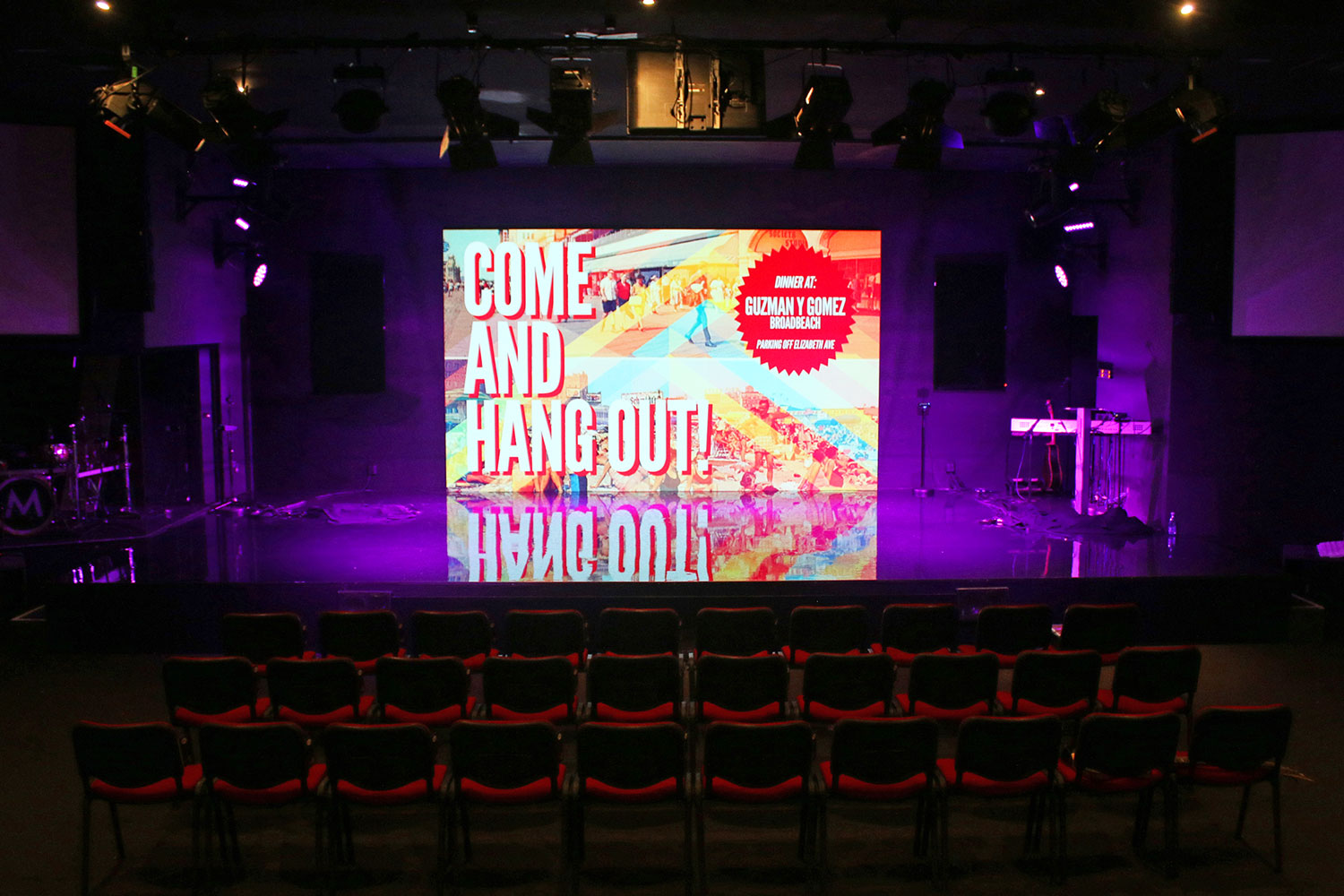 Russell Baker from AV productions came up with the concept of incorporating a LED video wall into the church’s productions, which are very popular not only for the different ministries they run on the weekends, but also within their internet based ‘Connect Groups’.